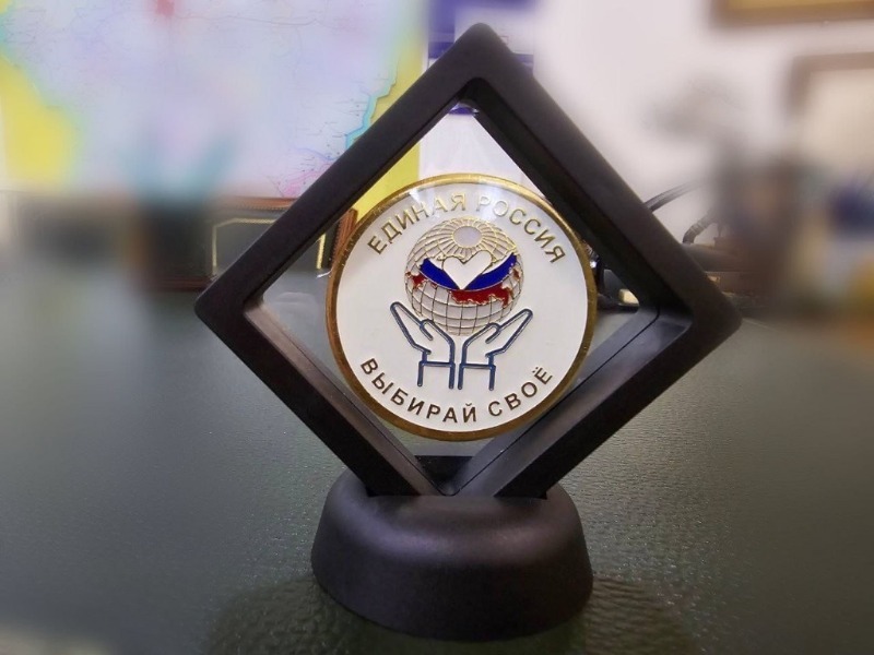 Максим Егоров получил памятный знак из рук депутата Государственной Думы Сергея Морозова, который курирует данный проект.
