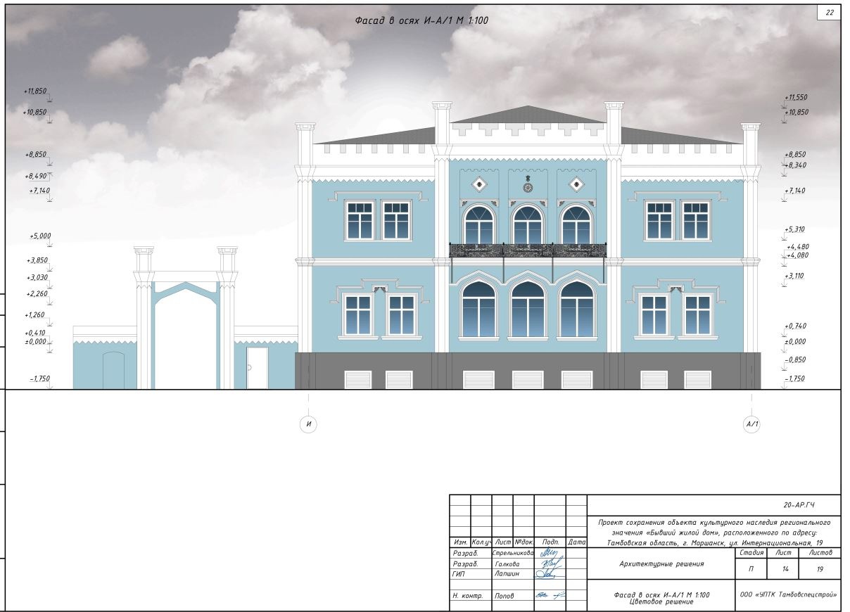 Согласно конкурсной документации, до 30 ноября специализированная организация, выигравшая торги, должная отремонтировать кладку стен, восстановить декоративные элементы фасада и провести его отделку. Проект реставрации в 2021 году подготовила тамбовская компания – ООО «УПТК Тамбовспецстрой». Он обошёлся в 2,7 миллиона рублей, что больше суммы, выделяемой на реставрацию.