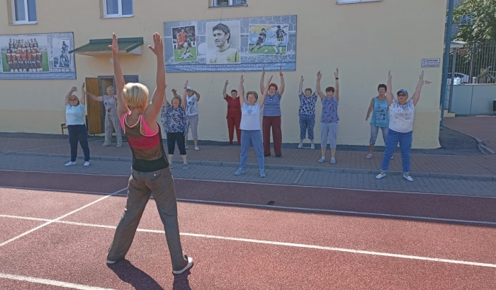 На стадионе «Локомотив» прошла уже ставшая традиционной зарядка с элементами дыхательной и суставной гимнастики, танцетерапии. Заряд бодрости и позитива всем участникам был обеспечен!