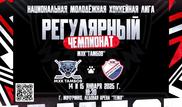 14 и 15 января в ледовой арене "Темп" состоятся очередные встречи в рамках регулярного чемпионата первенства НМХЛ (6+). МХК "Тамбов" сыграет с МХК "Кристалл" (город Саратов). Начало 18:30.