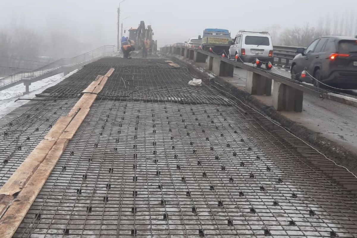На данный момент техническая готовность объекта – свыше 70%. Выполнено вертикальное бетонирование тротуарной плиты пролетных строений, произведен демонтаж перильного ограждения пролетных строений по левой стороне, демонтаж ж/б дорожного ограждения по левой стороне, бетонирование накладной плиты пролетных строений (выравнивающий слой).