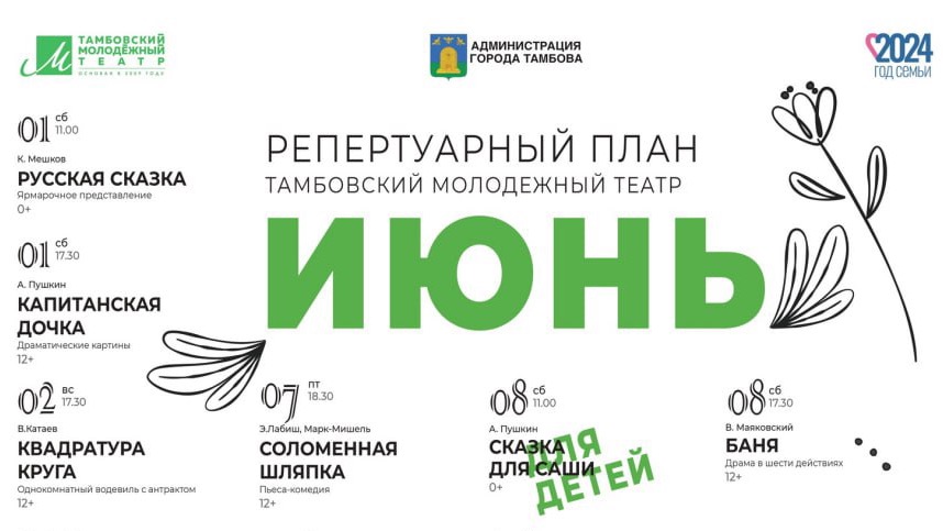 Сегодня, 1 июня, в Тамбовском молодежном театре дал старт традиционному проекту «Лето в ТМТ». Для зрителей подготовили афишу на июнь и июль.