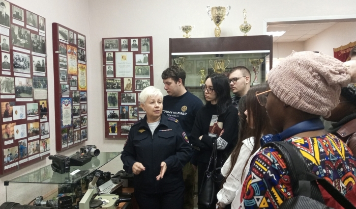 Студенты побывали в Музее истории МВД городского отдела полиции, узнали об истории его создания, сотрудниках ведомства, встретились с работниками отделения по экономическим преступлениям и противодействию коррупции, познакомились с работой экспертов-криминалистов.