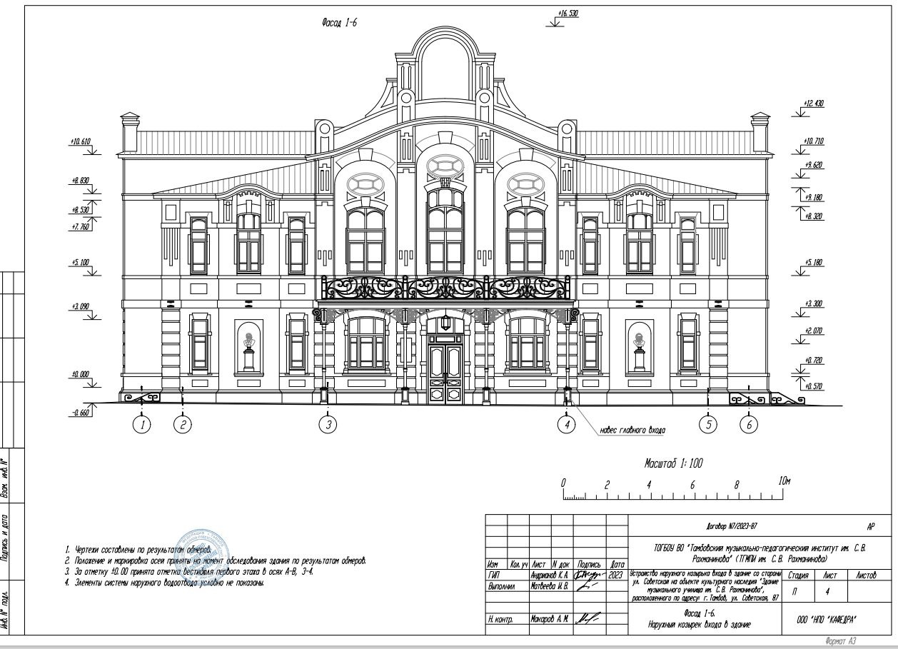 У исторического здания Тамбовского государственного музыкально-педагогического института имени Рахманинова планируют восстановить наружный козырёк над центральным входом.