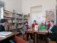 Заведующая библиотеки провела обзор у книжной выставки "Мир книг православных". Проведённая православная беседа оставила позитивное впечатление.
