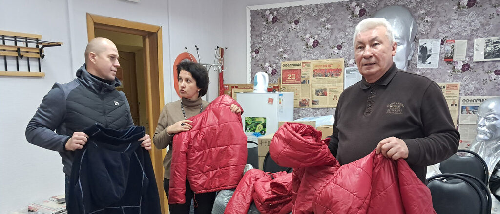 25 ноября в обком КПРФ поступила новая партия вязаных носков, перчаток, а также демисезонные утеплённые куртки, спортивные костюмы, майки для детей и подростков, которые вскоре уйдут в составе гумгруза на Донбасс.