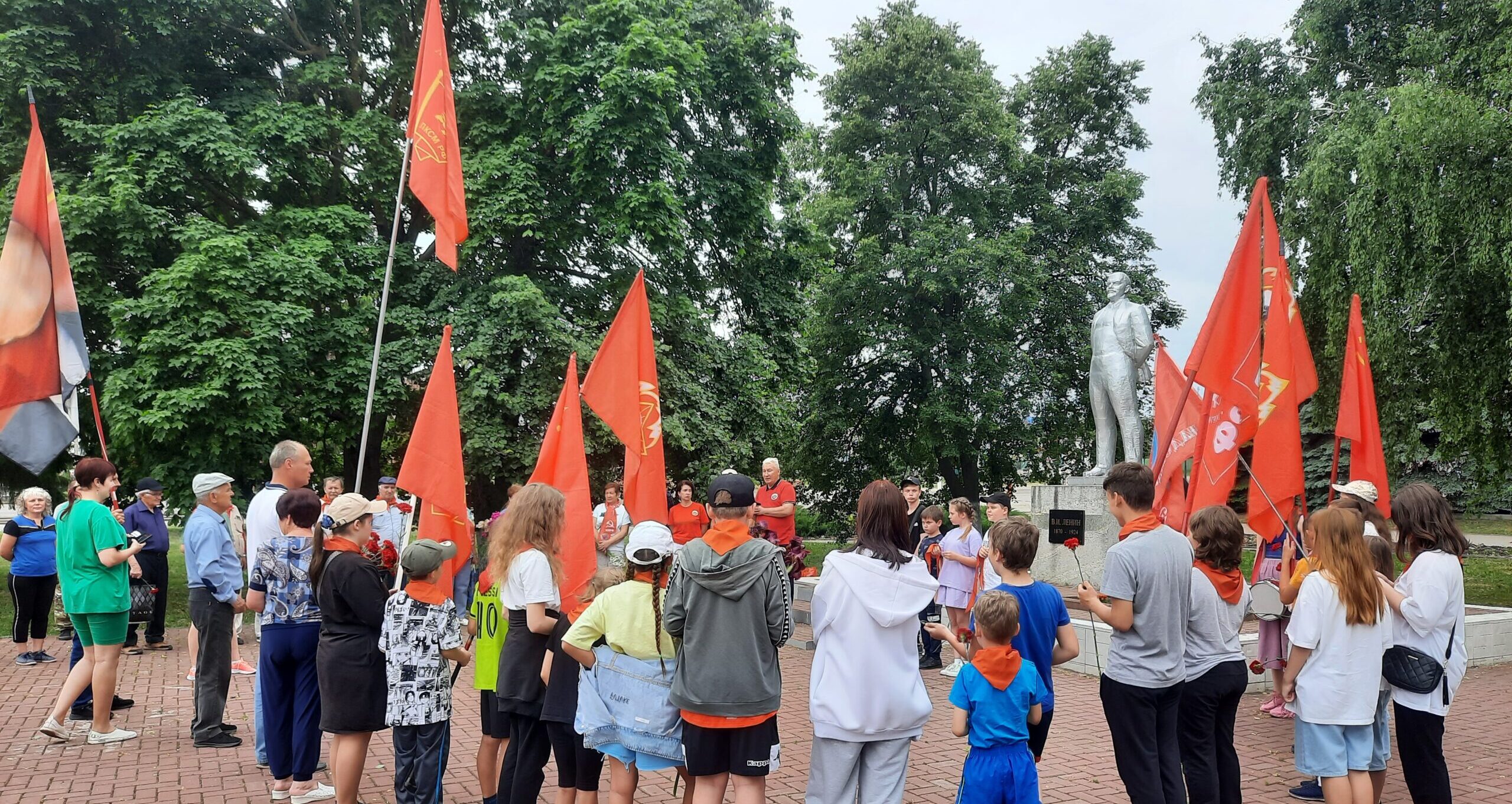 Здесь вступающим в ряды пионерии повязали красные галстуки, юные ленинцы дали клятву на верность идеям социализма. Возложили красные гвоздики.