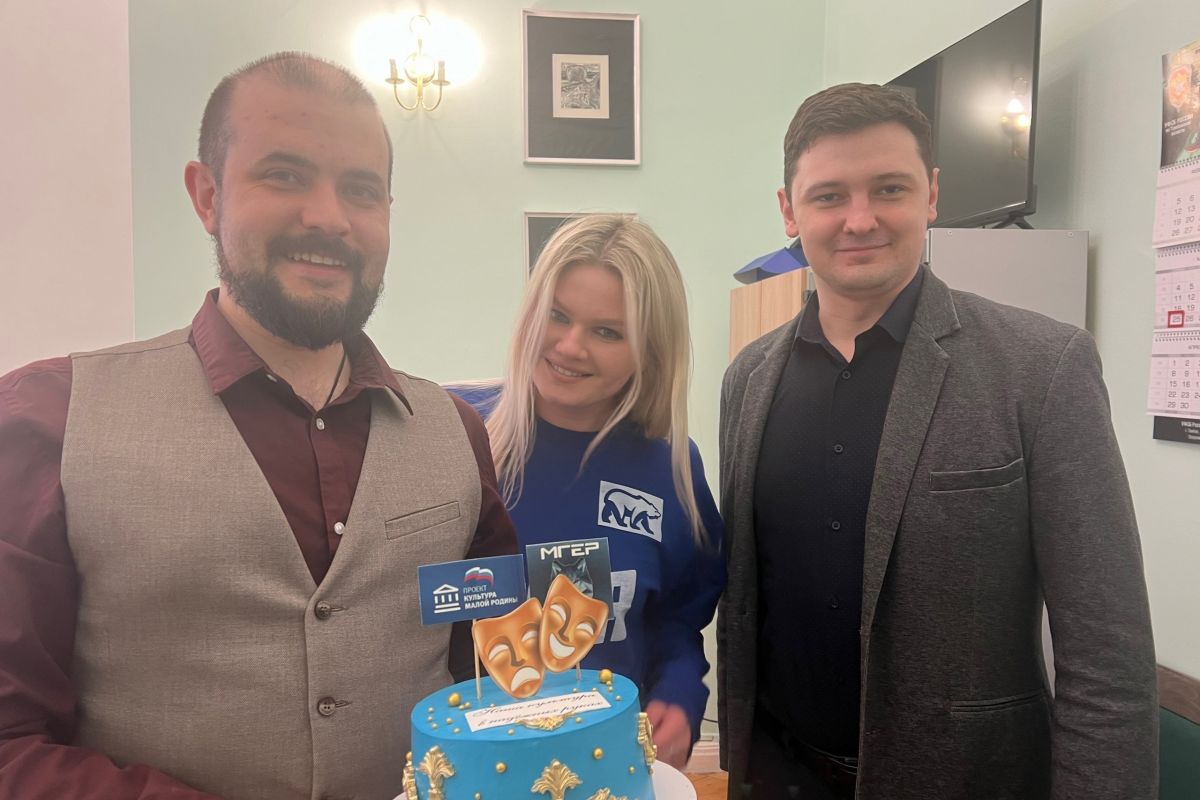 Руководитель «Молодой Гвардии» в Тамбовской области Жанна Борисова вручила директору Тамбовского драматического театра, региональному координатору партийного проекта «Единой России» «Культура малой Родины» Валерию Беляеву символичный торт-поздравление с Днем работника культуры. Молодогвардейцы поблагодарили в его лице всех деятелей культуры за труд и профессионализм.