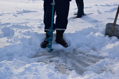 В рамках выезда на местах сотрудники аварийно-спасательной службы проводили измерения толщины льда. Она превышает 24 см. По словам спасателей, такой размер считается безопасным для группового выхода на лед.