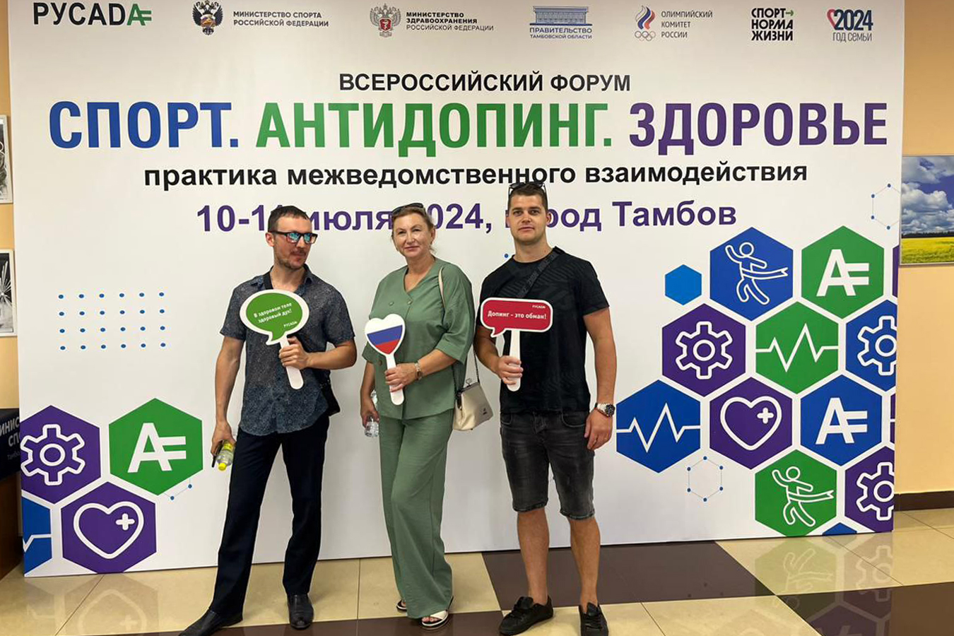 Сотрудники ТОГБУЗ «Рассказовская ЦРБ» Воскресенская Галина, Висков Артем, Степанов Марк приняли участие в работе Всероссийского Форума «Спорт. Антидопинг. Здоровье. Практика межведомственного взаимодействия», организованный совместно РУСАДА, Правительством Тамбовской области и Министерством спорта Тамбовской области.