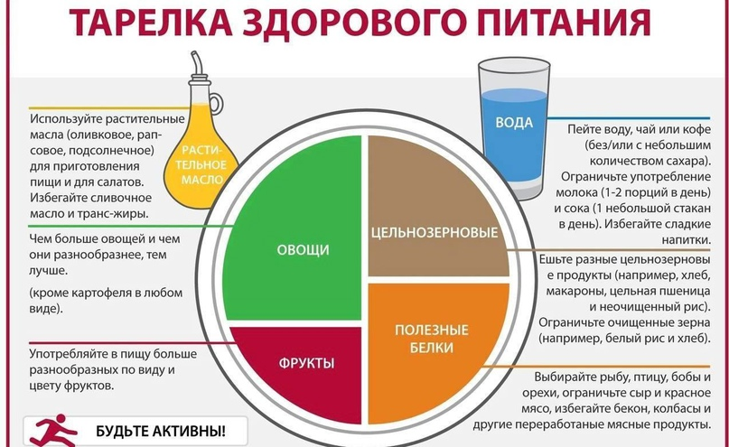 Не забывайте про овощи, фрукты и достаточное количество воды.
