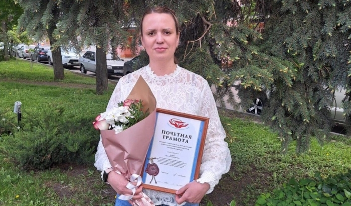 Почетной грамотой Президиума Тамбовской областной организации профсоюза работников здравоохранения РФ за активную работу в Профсоюзе отмечена Алёна Попова - процедурная медицинская сестра процедурного кабинета поликлиники ТОГБУЗ "ГБ им. С.С. Брюхоненко г. Мичуринска".