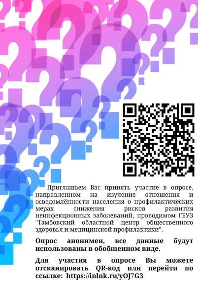 Социологический опрос в онлайн-формате по теме «Осведомлённость жителей Тамбовской области о мерах профилактики факторов риска развития хронических неинфекционных заболеваний»