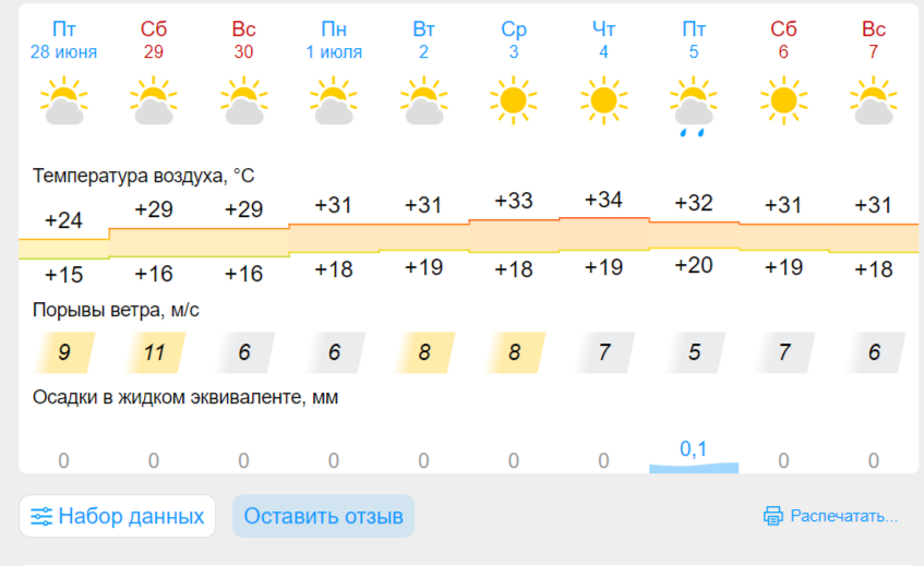 По расчётам синоптиков, следующая неделя будет неделей пляжной погоды - солнечной и жаркой. Температура воздуха днём прогреется до +34 градусов.